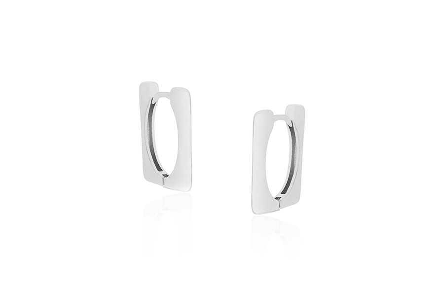 BRINCO EM PRATA, QUADRADO VAZADO COM 1 LADO CRAVEJADO, 5mm