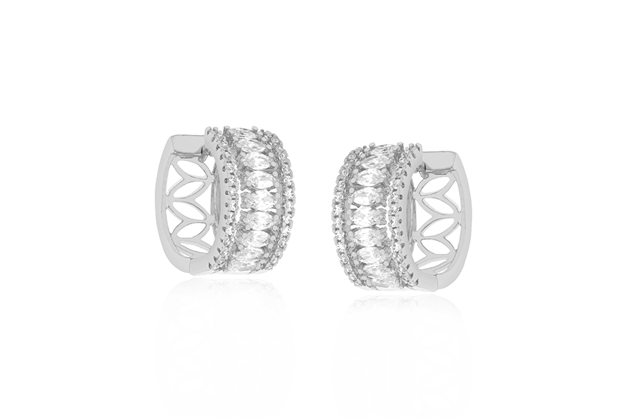 BRINCO EM PRATA, QUADRADO VAZADO COM 1 LADO CRAVEJADO, 5mm