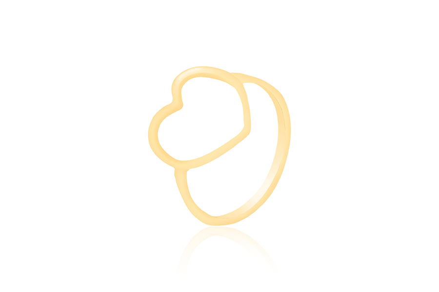 ANEL BANHADO EM RÓDIO BRANCO, CORAÇÃO 5mm LARGURA