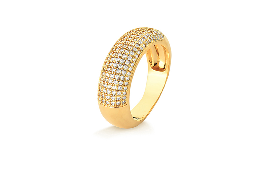 ANEL EM PRATA, ABERTO, COROA COM ZIRCÔNIAS, 6mm LARGURA