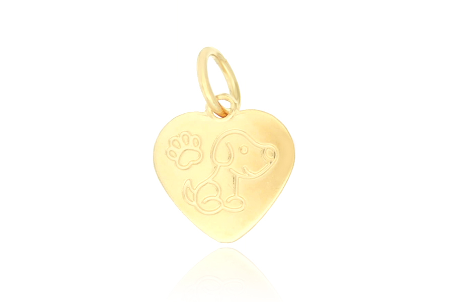 PINGENTE BANHADO EM OURO, CORAÇÃO, CACHORRO 11mm LARGURA