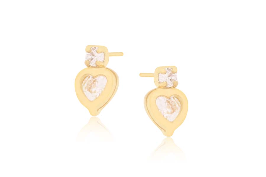 BRINCO BANHADO EM OURO, DOIS CORAÇÕES 9mm LARGURA