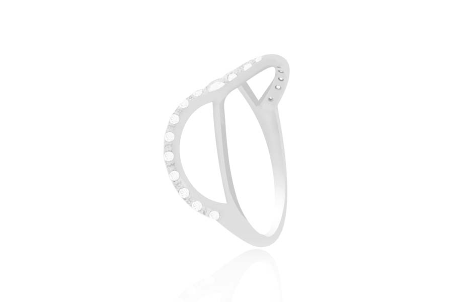 ANEL EM PRATA, MEIO ARO TRABALHADO, OLHO GREGO CRAVEJADO 3,80mm ALTURA
