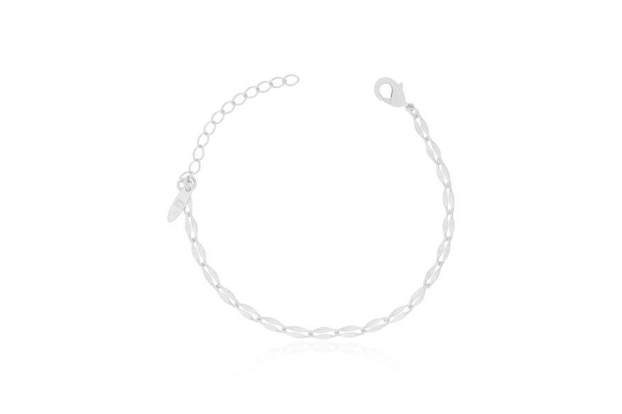 PULSEIRA BANHADA EM PRATA LEVE, CORRENTE ELO 2,60mm LARGURA, 13cm COMPRIMENTO, EXTENSOR 3cm E PESO 1,20g