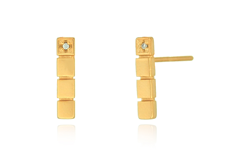 BRINCO EM PRATA, QUADRADO VAZADO COM 1 LADO CRAVEJADO, 5mm