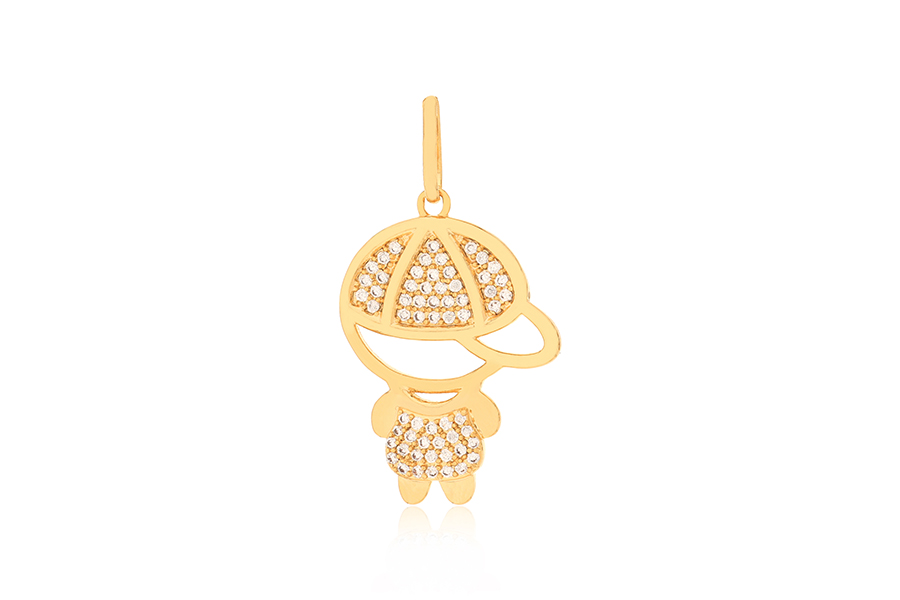 PINGENTE BANHADO EM OURO, MENINO 26mm ALTURA COM 61 ZIRCÔNIAS