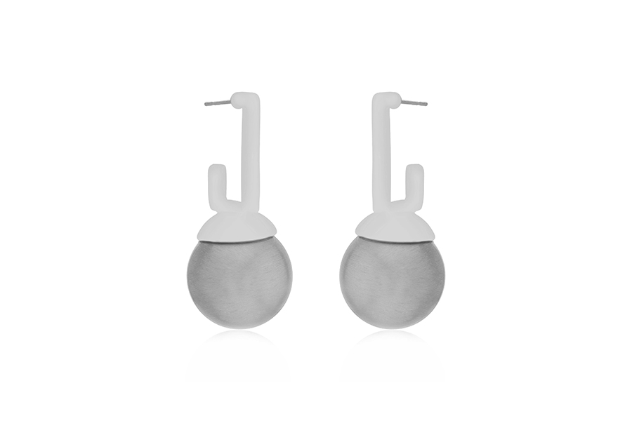 BRINCO BANHADO EM RÓDIO BRANCO, ESFERA FOSCA 5mm