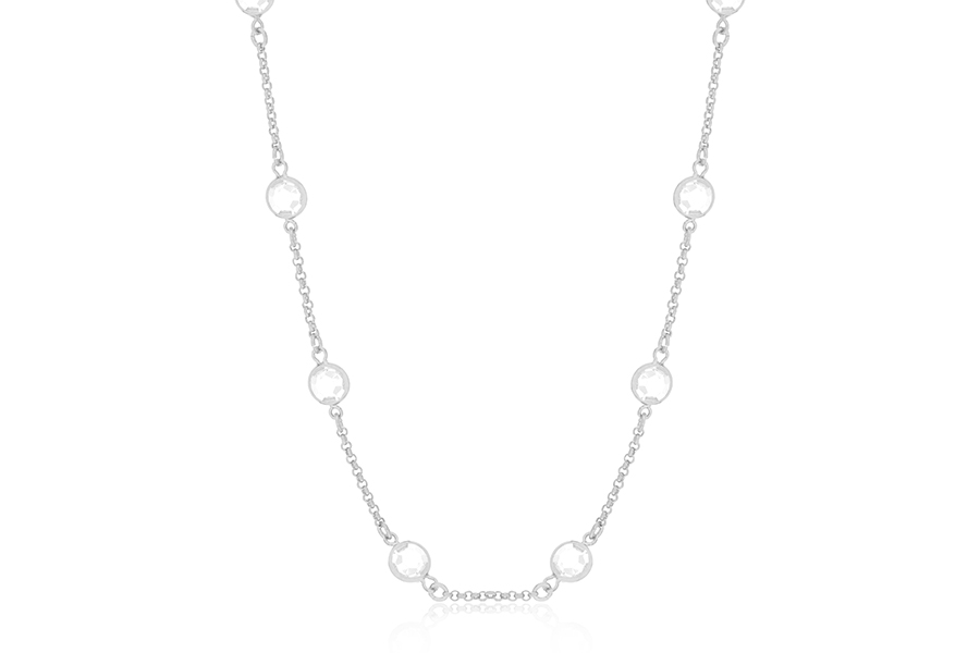 CHOKER BANHADA EM RÓDIO BRANCO, CORRENTE ELO VENEZIANA 0,80mm, 35cm COMPRIMENTO, EXTENSOR 10cm COMPRIMENTO E PESO 1,80g
