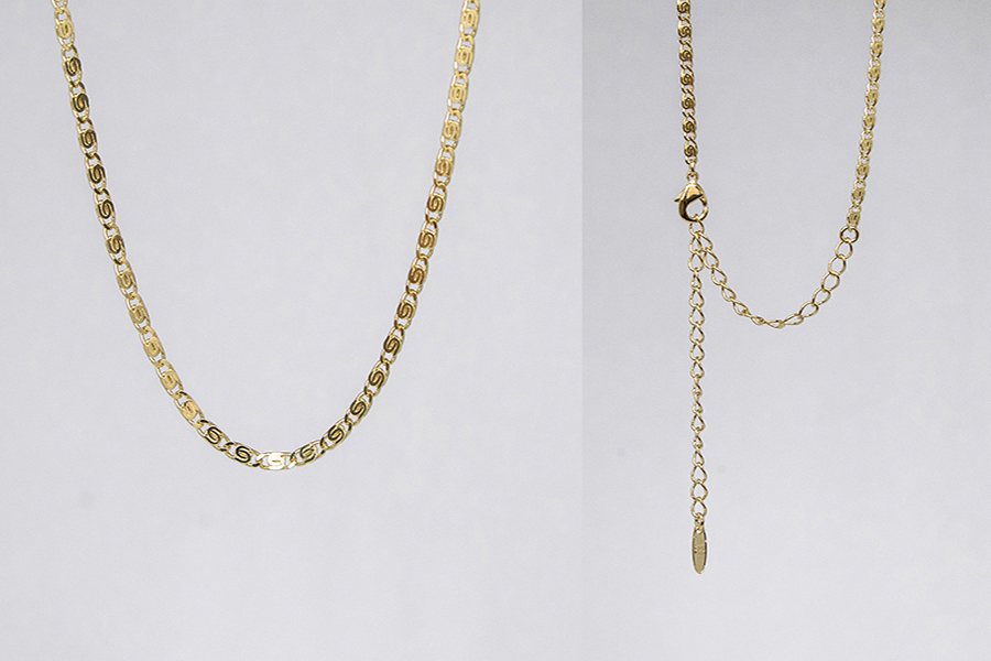 CORRENTE BANHADA EM OURO, ELO VENEZIANA 0,80mm, 45cm COMPRIMENTO, EXTENSOR 5cm COMPRIMENTO E PESO 2,20g