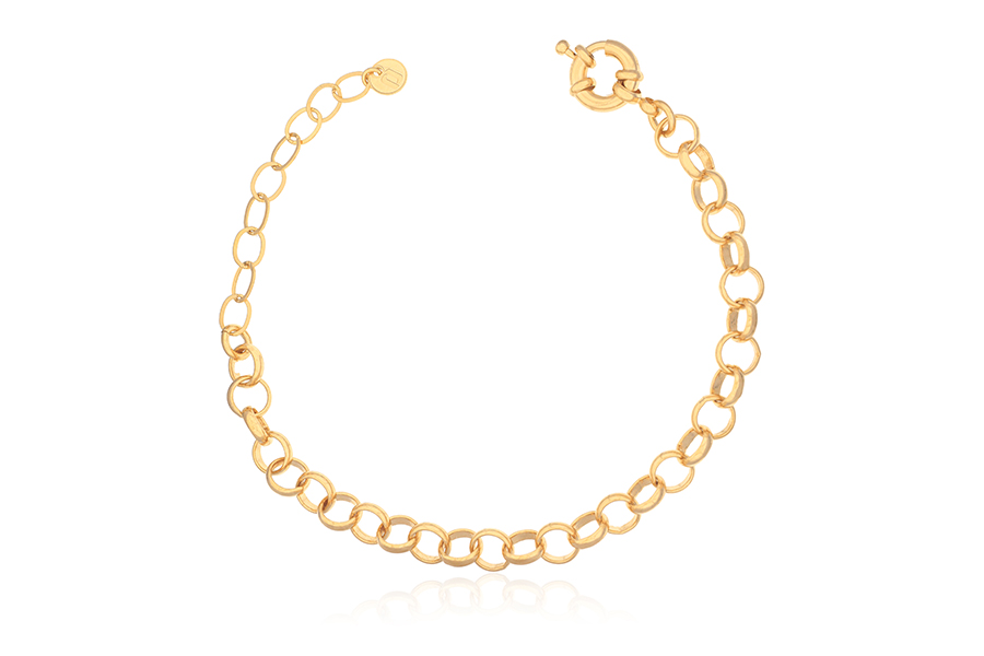 PULSEIRA BANHADA EM OURO, ESCRAVA, ELO 3,10mm LARGURA, 18cm COMPRIMENTO E PINGENTE REDONDO 17mm DIÂMETRO