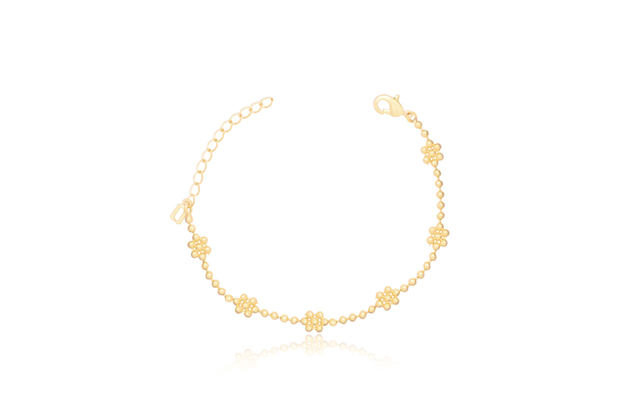 PULSEIRA BANHADA EM OURO, ELO ESFERA FLOR, 13cm COMPRIMENTO E EXTENSOR 3cm COMPRIMENTO
