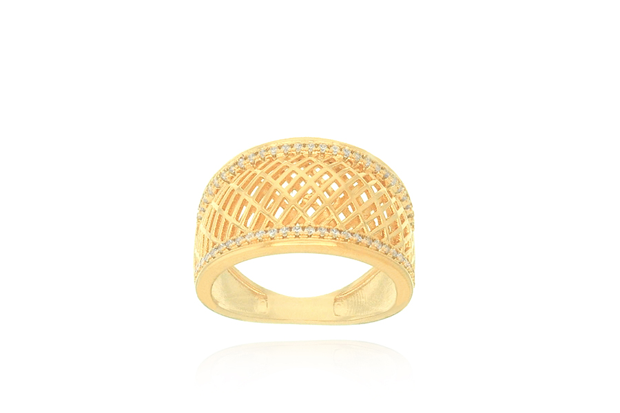 ANEL EM PRATA, ABERTO, COROA COM ZIRCÔNIAS, 6mm LARGURA
