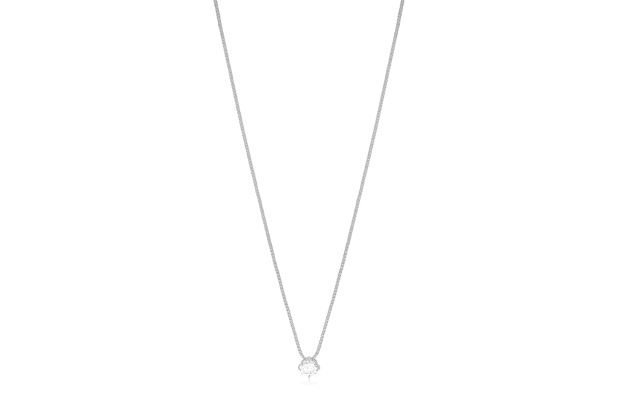 GARGANTILHA BANHADA EM RÓDIO BRANCO, VENEZIANA 0,80mm, 40cm COMPRIMENTO E CORAÇÃO 4mm LARGURA, PARA QUALQUER COR DE PEDRA