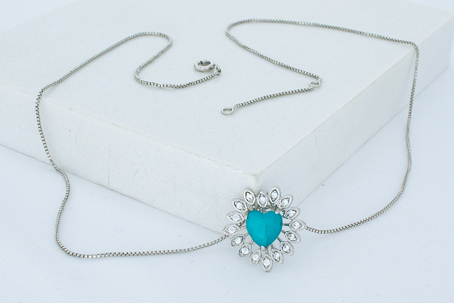 GARGANTILHA BANHADA EM RÓDIO BRANCO, VENEZIANA 0,80mm, 40cm COMPRIMENTO E CORAÇÃO 4mm LARGURA, PARA QUALQUER COR DE PEDRA