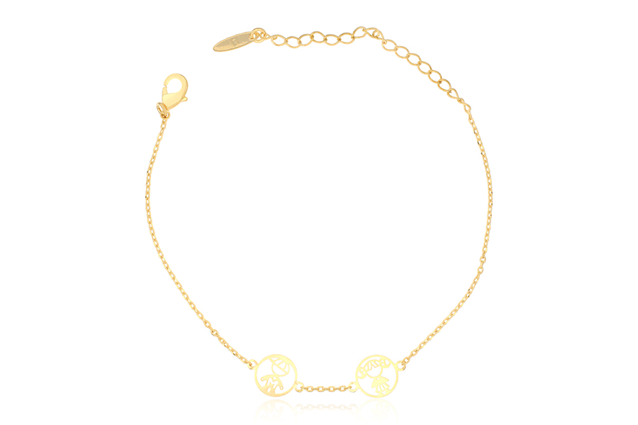 PULSEIRA BANHADO EM OURO INFANTIL ELO PORTUGUÊS 2mm 12cm COMPRIMENTO E CORAÇÃO LOVE 750mm LARGURA