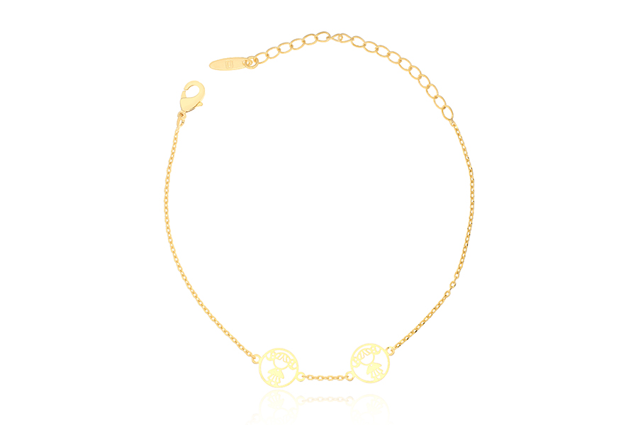 PULSEIRA BANHADA EM OURO, ELO OVAL 1,20mm LARGURA, 16cm COMPRIMENTO, EXTENSOR 5cm COMPRIMENTO, 2 MENINAS